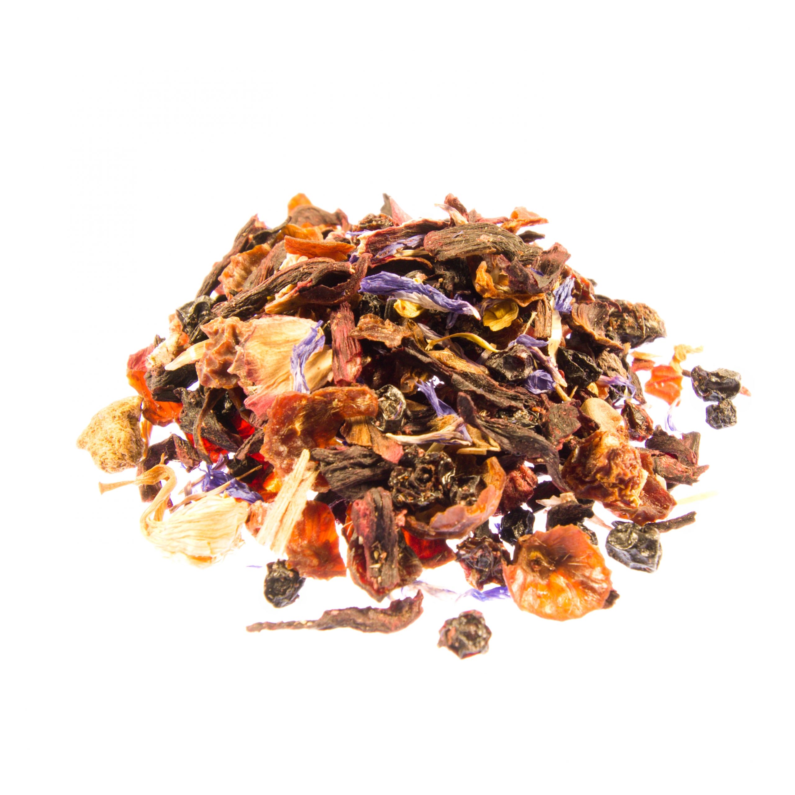 Složení: Květ ibišku, plod šípku, rozinky, plod černého bezu, květ slunečnice, květ chrpy, plod červeného rybízu, plod maliny, přírodně identické aroma.